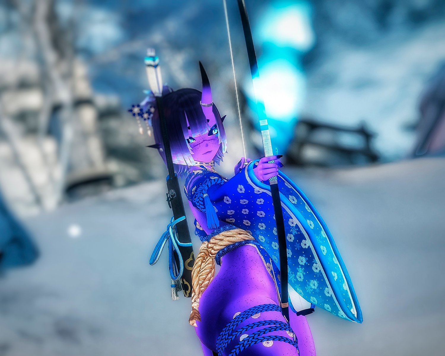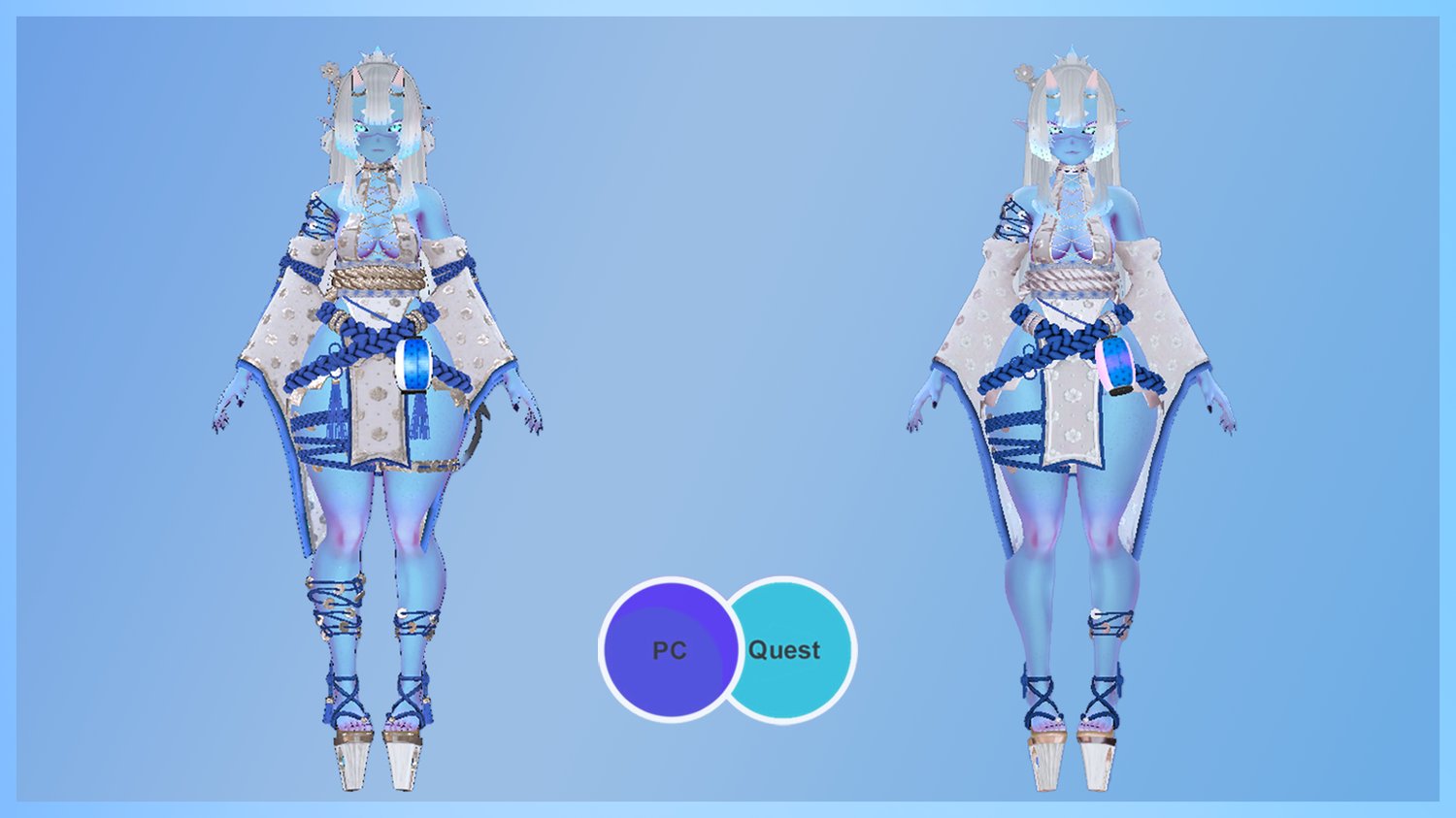 ALL skintones, oni skin hues, eye hues, eye sclera colors, hair colors, and outfit colors are Quest-compatible, and the full Yumi Bow system with explosion and flame particles and targeting works as well!